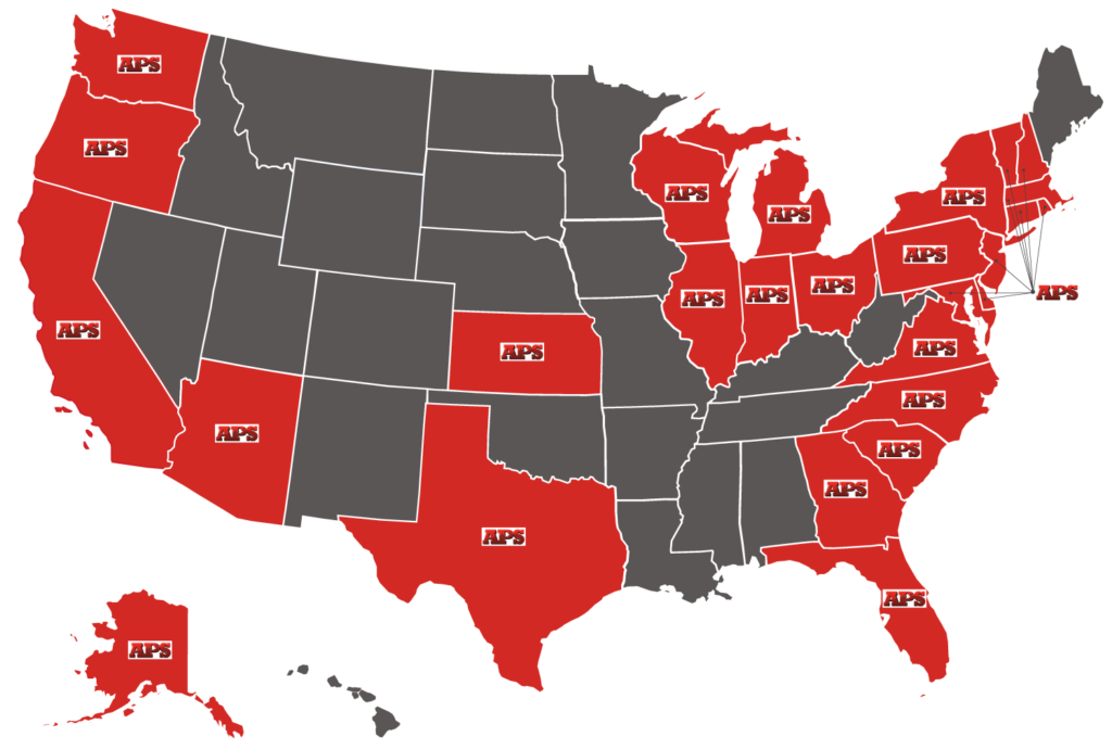 We proudly offer service in all 50 states. The map below shows the states that APS currently has alerting stations in. We work with a full spectrum of customers, including single fire departments, townships, cities with a few stations, and full county districts.
